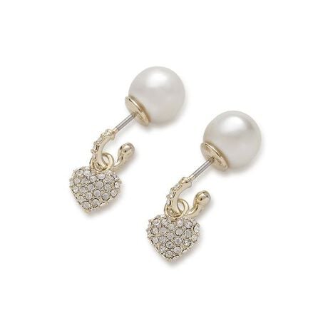 小粒のビジューをふっくらとしたハートに埋め込み、フープに通した愛らしいデザインピアス。自然と揺れることで一層の輝きを放ち、耳元を彩ります。
