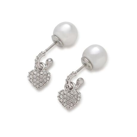 小粒のビジューをふっくらとしたハートに埋め込み、フープに通した愛らしいデザインピアス。自然と揺れることで一層の輝きを放ち、耳元を彩ります。