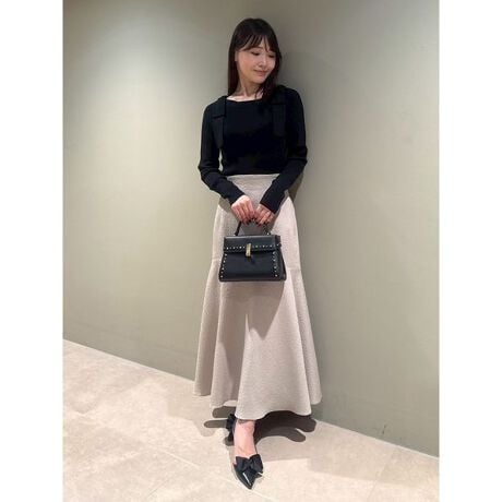 ハイウエストですっきりと着用できるマーメイドスカートです。前側を少しラウンドさせて前後差をつけた切り替えのラインは横から見ても美しく、裾のドレープが上品なデザインにしています。