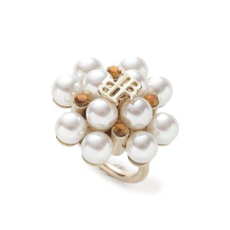 オリジナルのLBロゴが印象的な、存在感のあるパールリング。艶やかなパールにカラーストーンを添えて、マットになりがちな冬のコーディネートに上品な輝きをプラスします。ひとつ着けるだけで手元が華やぐため、ドレスアップシーンにもぴったりなアイテムです。