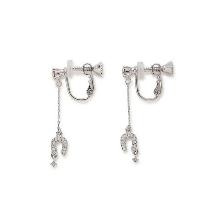 ほどよい長さのスイングデザイン揺れるたびにキラキラと輝きお顔回りに華を添えます。馬蹄の先に小さく揺れる1粒のクリスタルがアクセントです。