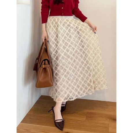 <b>【チュールのチェック柄が魅せる主役級ドラマティックスカート】</b>