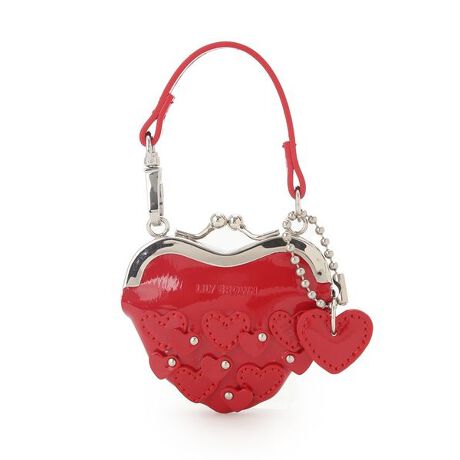 どこか懐かしいムード漂う、がま口ポーチ型のハートコインチャーム。つるんとした光沢が魅力のエナメル素材を使用し、レトロでキッチュなデザインに仕上げました。ふんだんにあしらったハートのパーツが愛らしさを引き立てます。バッグチャームとしてはもちろん、デニムのベルトループにつけたりとアレンジも自在。ハート型のキーホルダー付きで、ギフトにもぴったりなアイテムです。