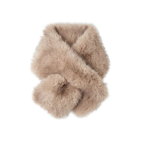 まるでリアルファーのような柔らかく艶やかな毛並みがリュクスな印象のファーティペットが届きました。100%ポリエステルで仕立てられたエコファーを使用。ふんわりとボリュームがあり、首元に温かみをプラス。小顔効果も期待大です。スリットで差し込むだけで安定して着用できる仕様です。フラワーブローチセット(SWGG255671)をポイント使いにしてもエレガント。ニュアンスカラーのアイボリー、こなれ感のあるグレー、大人な濃いめブラウンの3色展開です。