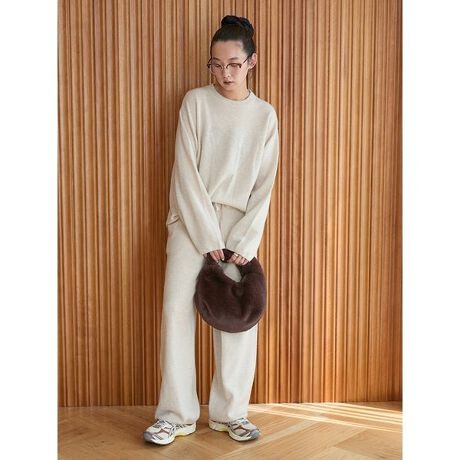 ウエストゴム仕様でストレスフリーな履き心地のニットパンツはシンプルなデザインで普段のスタイリングに溶け込みやすい一枚。同素材のトップス【13WNP255003】とセットアップ対応可能。