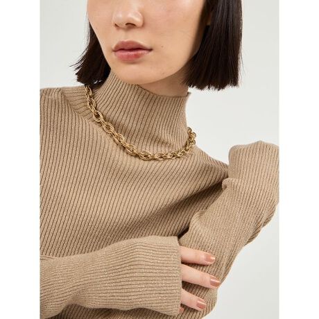 フープのパーツが重なったデザインチェーンのネックレス。シンプルな服装を華やかに見せてくれること間違いなしのデイリー使いおすすめなアイテムです。