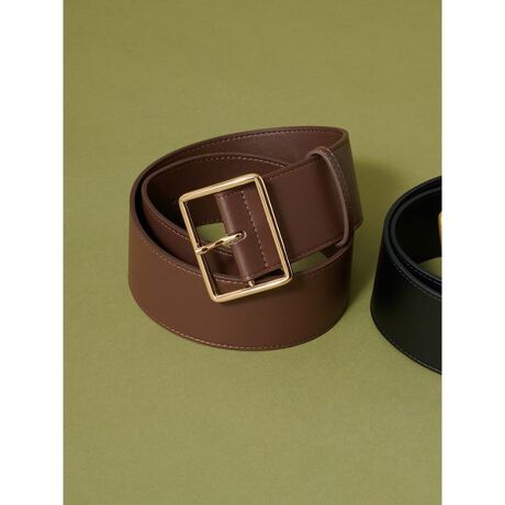上質な本革を使用したクラシカルなリアルレザーベルトが登場。太が幅めの設計で存在感があります。ワンピースやカーディガン、コートの上からウエストマークするとスタイル全体を引き締め、バランス良く見せてくれるアイテムです。ブラックとブラウンの2色展開。しなやかな本革を使用しています。ブラックの華奢なバックルはヴィンテージ感をプラスしたゴールドでニュアンスをプラス。ブラウンはチョコレートカラーで、艶感のあるゴールドメタルバックルを合わせて上品に仕上げました。