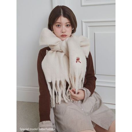 <b>【マフラーをリボン巻きしたベアー刺繍がワンポイントの上品ふんわりマフラー】</b>