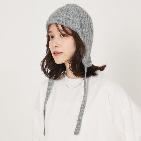 長めのチンストラップがポイントのフライトキャップデザインのニット帽。耳当ても大き目でしっかり防寒としても活躍します!ストラップは頭上で留めてアレンジするのも◎かぶりやすいシルエットで、大人カジュアルにもアクセントとして間違いなしです!