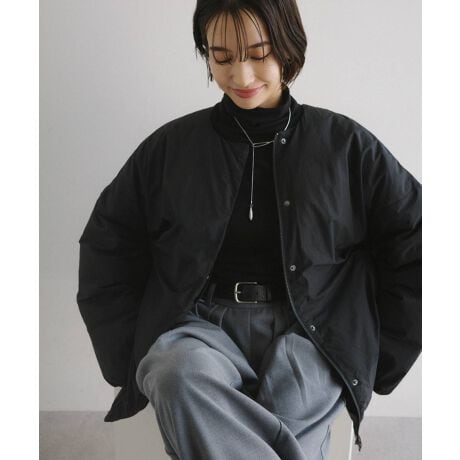 ノーカラー サイドジップ ダウンジャケット evernavy エバーネイビー