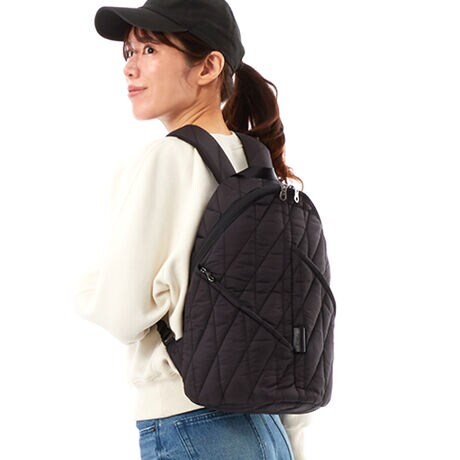 バイアスに施したキルトのデザインが、シャープな印象のデイリーバッグ。