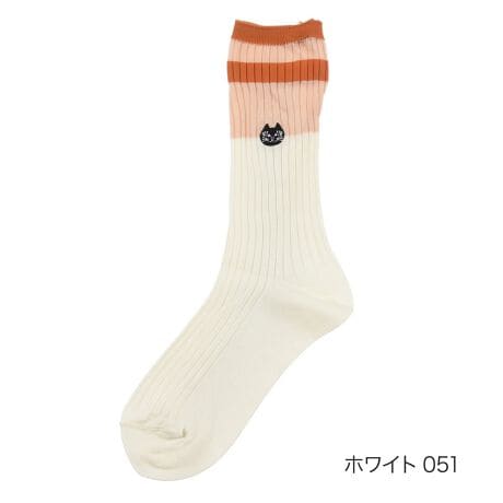 シンプルなリブのラインソックスをバイカラーにすることでマニッシュかつロックなイメージの一足。そこに乗せたティティ刺繍がギミックがあり可愛いです。