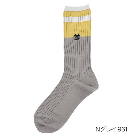 シンプルなリブのラインソックスをバイカラーにすることでマニッシュかつロックなイメージの一足。そこに乗せたティティ刺繍がギミックがあり可愛いです。