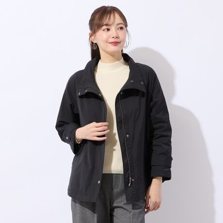 衿元のギャザーやドット釦使いなどややスポーティなディティールを取り入れたブルゾンタイプのコンパクトジャケット。カジュアルスタイルからタウンスタイルにぴったり。さっと織ってサマになるアイテム。