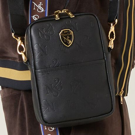リアルレザーにモノグラムの型押しをしたオリジナルマテリアルの縦型ショルダーは、メンズに人気のデザイン。