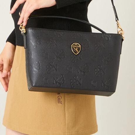 リアルレザーにモノグラムの型押しをしたオリジナルマテリアルの2wayショルダー。