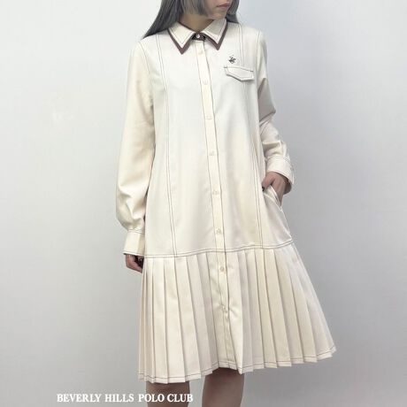 【BEVERLY HILLS POLO CLUB】ダブルカラープリーツワンピース