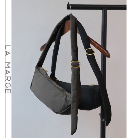 カジュアルになりすぎない印象のマットなナイロンを使用したショルダーバッグ。