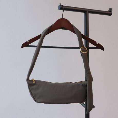 カジュアルになりすぎない印象のマットなナイロンを使用したショルダーバッグ。