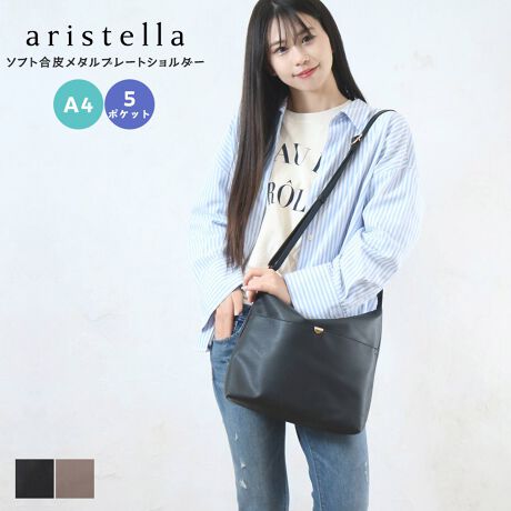 しっとりと手に馴染むソフト合皮素材、フロントにあしらわれた控えめながらも洗練された印象のメタルプレートが、大人の女性らしい上品な輝きをプラス。