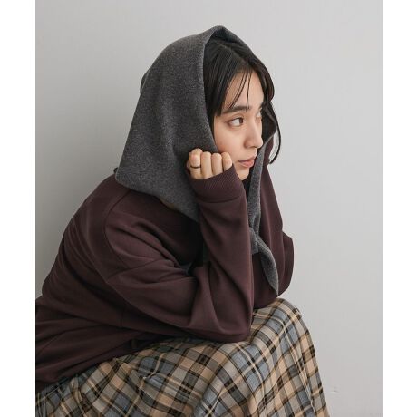 ポリエステル・ナイロン・ウール混の軽やかなニット素材を使用したフードスカーフ。