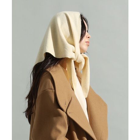 ポリエステル・ナイロン・ウール混の軽やかなニット素材を使用したフードスカーフ。