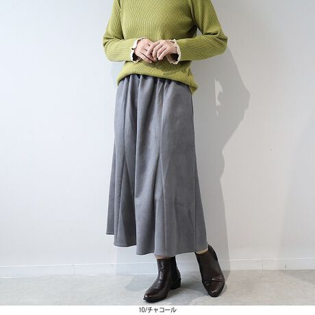 Tシャツやカットソー、ニットなど、どんなトップスと合わせても上品に決まる万能スカートです。