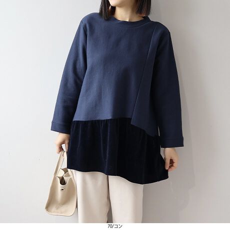 一枚で着映える、暖か裏起毛 異素材切替チュニック