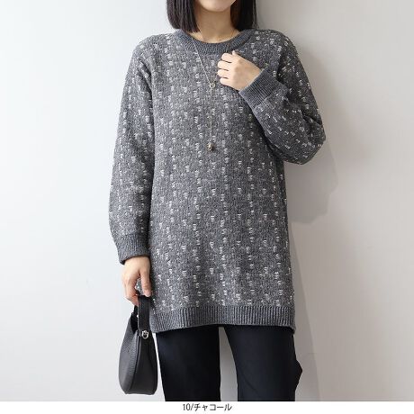 体型カバーとお洒落を両立 ふんわり着心地ジャガード編みチュニック