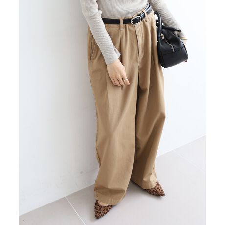 ゆるやかなカーブで丸みを帯びた、柔らかい印象のワイドチノパンツ。