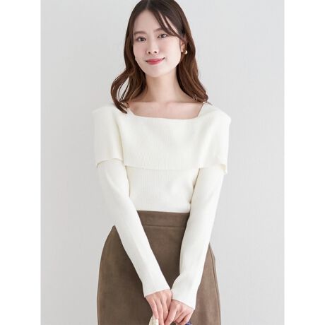 [型番:25550710807]デコルテを美しく見せるオフショルデザインが魅力のニット。広めの折り返しが顔まわりをすっきりと見せ、上品で大人らしい印象を演出します。リブ編み調の程よいフィット感で、スカートにもパンツにも好相性。デートやお出かけシーンにおすすめの一枚です。モデル(オフホワイト/黒着用)身長:160cmMサイズ着用モデル(/黒着用)身長:165cmMサイズ着用
