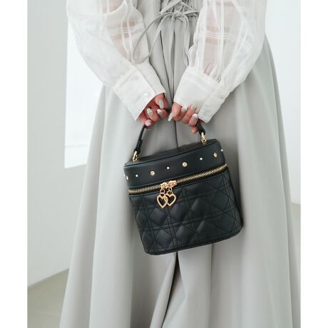 上品なキルティングデザインにビジュー×パールをあしらったビジュアル力抜群のバニティバッグ。