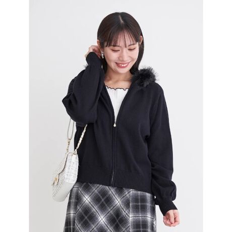 ふわふわのファーがフェミニン度を上げてくれるキレイ見えニットパーカー