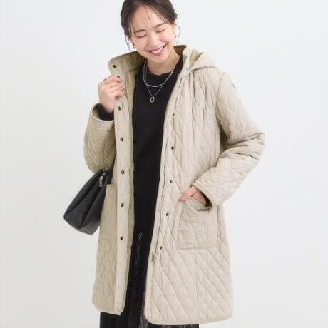 スタイル良く魅せてくれるキルトコートです。