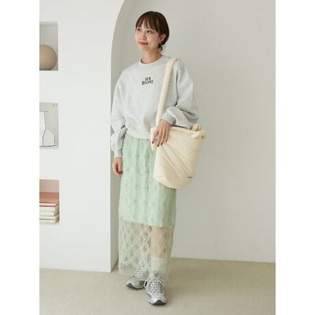 フラワーチュールが可愛いレースのスカートセット。ウエスト部分も華奢な平ゴムにしているのでウエストがゴムでもスッキリ着こなせます。