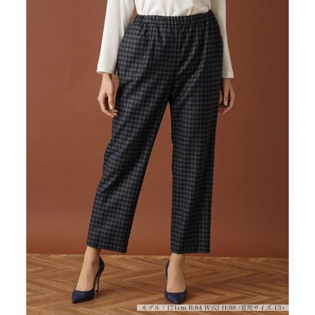 ブリティッシュトラッドが薫るシェパードチェックを、落ち着いたダークトーンで表現したクロップドパンツ。太すぎず細すぎずの絶妙なストレートシルエットでスマートにスタイリングできる一本。ウエストは総ゴム仕様とし、心地よいフィット感をもたせました。ニットやカットソー、ブラウスといったシンプルなトップスを合わせるだけで軽快な印象のカジュアルルックが楽しめます。