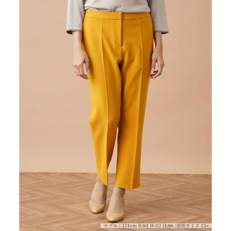 ストレッチの効いたセンタープレス入りのカラークロップドパンツ。今シーズンの注目カラーでご用意しました。股上をやや高めに設定し、程よいリラックス感を生み出しています。腿から裾にかけて絞り込んだテーパードシルエットでスマートなスタイリングができる一本。綺麗めにもカジュアルにも使いやすく、様々なトップスとコーディネートできます。初秋の汗ばむ季節にお手入れしやすいのも嬉しいポイント。