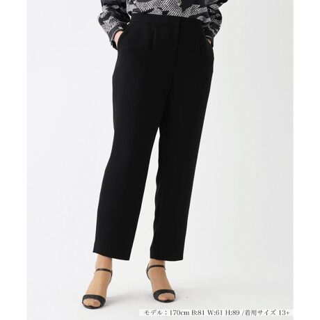 定番アイテムとしてワードローブにスタンバイさせておきたいベーシックなパンツ。トップスを選ばずコーディネートできるので、ひとつ持っていると重宝します。ノータックですっきりとしたウエスト周りを実現。