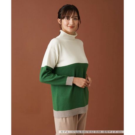 カラーブロックハイネックニット