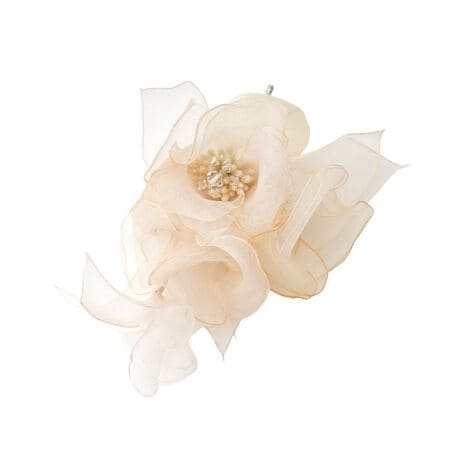 レリアンオリジナルのコサージュ。丁寧に作り込まれたデザインは、フォーマルな装いに華やぎを添えます。ジャケットやワンピースにプラスして、上品で洗練された印象に。