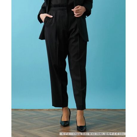 フロントに施されたタックが立体的な美しいテーパードシルエットを描きだすパンツ。腿周りにゆとりをもたせつつ、膝下を絞り込んだレッグラインが絶妙。生地は程よい光沢感を放ち、洗練された上品さを演出。デザイン性に富んだ華やかなブラウスとコーディネートすることで一層の魅力を放ちます。日常からオケージョンまで多彩なシーンでの着こなしを提案する、スタイリッシュなアイテムです。
