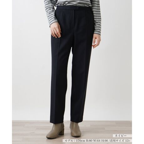 洗練されたスマートな印象を与える、美しいテーパードシルエットを描き出すセンタープレスパンツ。股上を深めに設定しており、生地には程よいストレッチ性があるので足捌きも良好。無駄な装飾を省いたベーシックなデザインでトップスともコーディネートしやすく、汎用性に優れた一本。フロントタブで着脱が行えます。ハイウエストではけるのでタックインすれば脚長見せのスタイルアップ効果も狙えそうです。