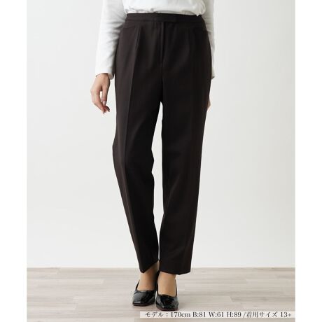 洗練されたスマートな印象を与える、美しいテーパードシルエットを描き出すセンタープレスパンツ。股上を深めに設定しており、生地には程よいストレッチ性があるので足捌きも良好。無駄な装飾を省いたベーシックなデザインでトップスともコーディネートしやすく、汎用性に優れた一本。フロントタブで着脱が行えます。ハイウエストではけるのでタックインすれば脚長見せのスタイルアップ効果も狙えそうです。