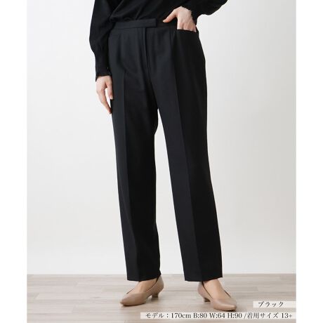 洗練されたスマートな印象を与える、美しいテーパードシルエットを描き出すセンタープレスパンツ。股上を深めに設定しており、生地には程よいストレッチ性があるので足捌きも良好。無駄な装飾を省いたベーシックなデザインでトップスともコーディネートしやすく、汎用性に優れた一本。フロントタブで着脱が行えます。ハイウエストではけるのでタックインすれば脚長見せのスタイルアップ効果も狙えそうです。
