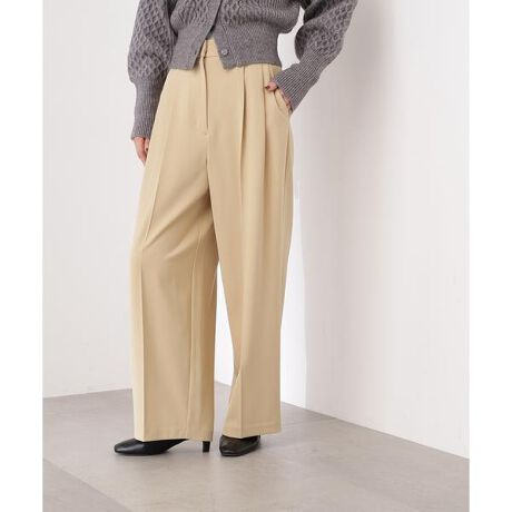 ほどよいワイドなシルエットのツータックパンツ。ウエストまわりに立体感を持たせたツータックで腰まわりをカバーしつつ、すっきりとした印象に見せてくれます。ベーシックなデザインは着回し力抜群。どんなトップスとも合わせやすく、キレイめにもカジュアルスタイルにも活躍します。<素材>秋のコーディネートに取り入れやすいベーシック素材を使用。しなやかな風合いでシルエットをキレイにキープします。裏地がなく軽いはき心地です。<詳細>仕様・前ファスナー裏地・なし透け感・なし / 光沢・なし / 伸縮性・なし生地の厚さ・普通※モデルの着用画像の場合、光の当たり具合により、実際の色味と異なって見えることがございます。色味は、商品単体の画像をご参照ください。