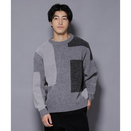 ほんのり光沢感のあるモール糸を使用したクルーネックニット。オリジナル柄で編みたてたニットは一枚着としてはもちろん、コートのインナーとしても映える一着です。