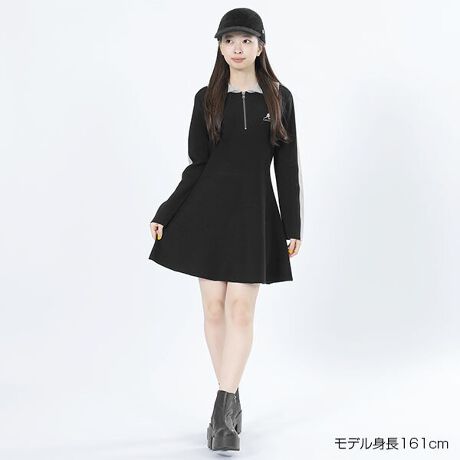 【KANGOL×MARY QUANT COLLECTION】カンゴールとコラボした、アーカイブ風のレトロなニットワンピース。◆ポイント・左胸にコラボ刺繍・肩〜袖にかけて配色ライン入り・ハーフジップ・ミニ丈・長袖◆コーディネートパンツを合わせるスタイリングもおすすめ。[型番:225-404803]