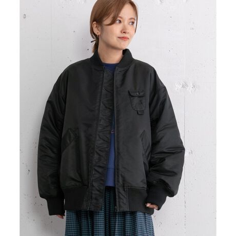 ヴィンテージのフライトジャケットを参考にしたオーバーサイズのMA-1ブルゾン。高密度に織られたツイル素材を使用しています。控え目な光沢感があり、深みのある色合いです。思いっきりカジュアルにスタイリングをするのが今の気分。少し高めにした衿や袖口のリブ切り替えが程よいフィット感。防寒性もあります。少し斜めにつけたアイコニックな立体ポケットは、下側にループをつけているので、キーチャームなどをつけられます。ポイントの配色裏地はダイヤ柄に丸いお花をプラスしたオリジナルのキルティング柄です。