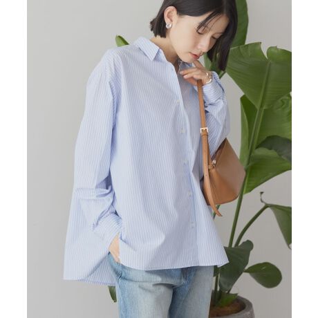 よりすっきりと見えるようにサイズ感を見直しアップデートした定番のベーシックシャツ。羽織としても着やすいオーバーサイズ感はキープしつつ、レイヤードした時に程よく裾が見える仕様に仕立てました。シワになりにくい素材を使用し、イージーケアが叶うのもポイント。一枚着はもちろん、幅広い着こなしに活躍する汎用性の高いアイテムです。透け感[ややあり]