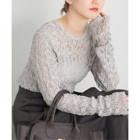 繊細で立体感のあるフラワーモチーフのストレッチレースが存在感のあるプルオーバー。